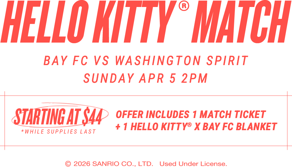 By providing my email and/or phone number and clicking “subscribe”, I hereby consent to receive information from BAFC Holdings, LLC, National Women’s Soccer League, LLC, and each of their respective official marketing partners/sponsors, broadcast partners, and other business partners, including information about the National Women’s Soccer League, its Clubs, and its partners, and each of their products and services, competitions, and promotions, including through automatic dialing technologies and/or through artificial or prerecorded voice, at the telephone number provided. I understand that my consent is not required as a condition of becoming a fan club founder or otherwise receiving services from BAFC Holdings, LLC, or as a condition of purchase, and that message and data rates may apply. By providing my email and/or phone number and clicking “subscribe”, I confirm that I have read and agree to NWSLsoccer.com’s Privacy Policy and Terms of Service and the Bay FC’s Privacy Policy.