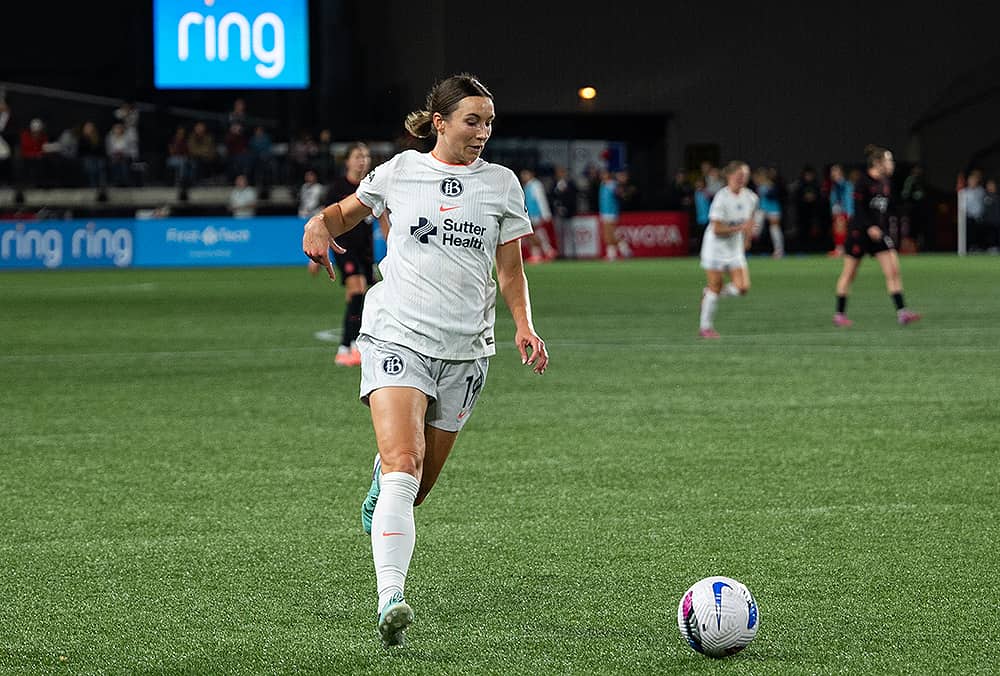 Bay FC suffered a 2-1 loss to the Portland Thorns on Saturday, October 4, at Providence Park in Rose City. Bay FC rookie midfielder Taylor Huff scored the game’s first goal, a left-footed strike from the top of the box off an assist from Karlie Lema in the 36th minute. Moments later Alyssa Malonson nearly gave Bay a 2-0 advantage, but a diving save by Portland goalkeeper Mackenzie Arnold kept it a one-goal game. Although Bay FC controlled the action early and went into halftime with the advantage, Portland seized momentum in the second half and got two goals from Olivia Moultrie, the second on a free kick in the 69th minute that wrapped around Bay’s defensive wall before finding the back of the net. With the loss, Bay FC falls to 4W-7D-12L on the season and is mathematically eliminated from reaching the NWSL postseason.